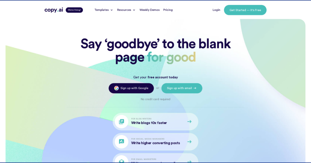 Copy.ai یک ابزار کپینویسی مبتنی بر هوش مصنوعی است که به افراد و مشاغل در ایجاد کپی بازاریابی با کیفیت بالا کمک میکند. طیف گسترده ای از قالب ها و ابزارها را برای تولید انواع مختلف محتوا، از جمله پست های رسانه های اجتماعی، کپی وب سایت، کمپین های بازاریابی ایمیلی و موارد دیگر ارائه می دهد. Copy.ai کاربرپسند است و می تواند توسط هر کسی، صرف نظر از تجربه نوشتن، استفاده شود.